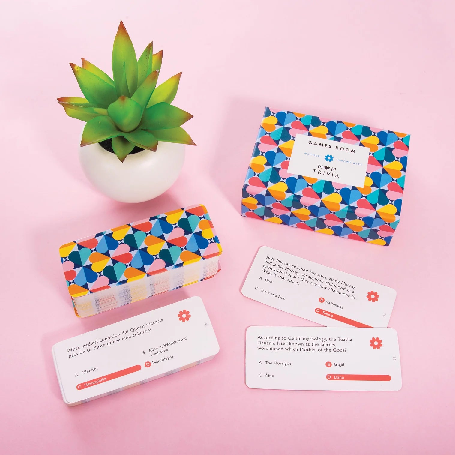 Time to test if mother really know best with Mum Trivia! This bright, portable box is filled with 140 surprising and engaging trivia questions about all types of mums! Perfectly sized to throw in a bag to take to game night, a parent's house, a family celebration, or on vacation.