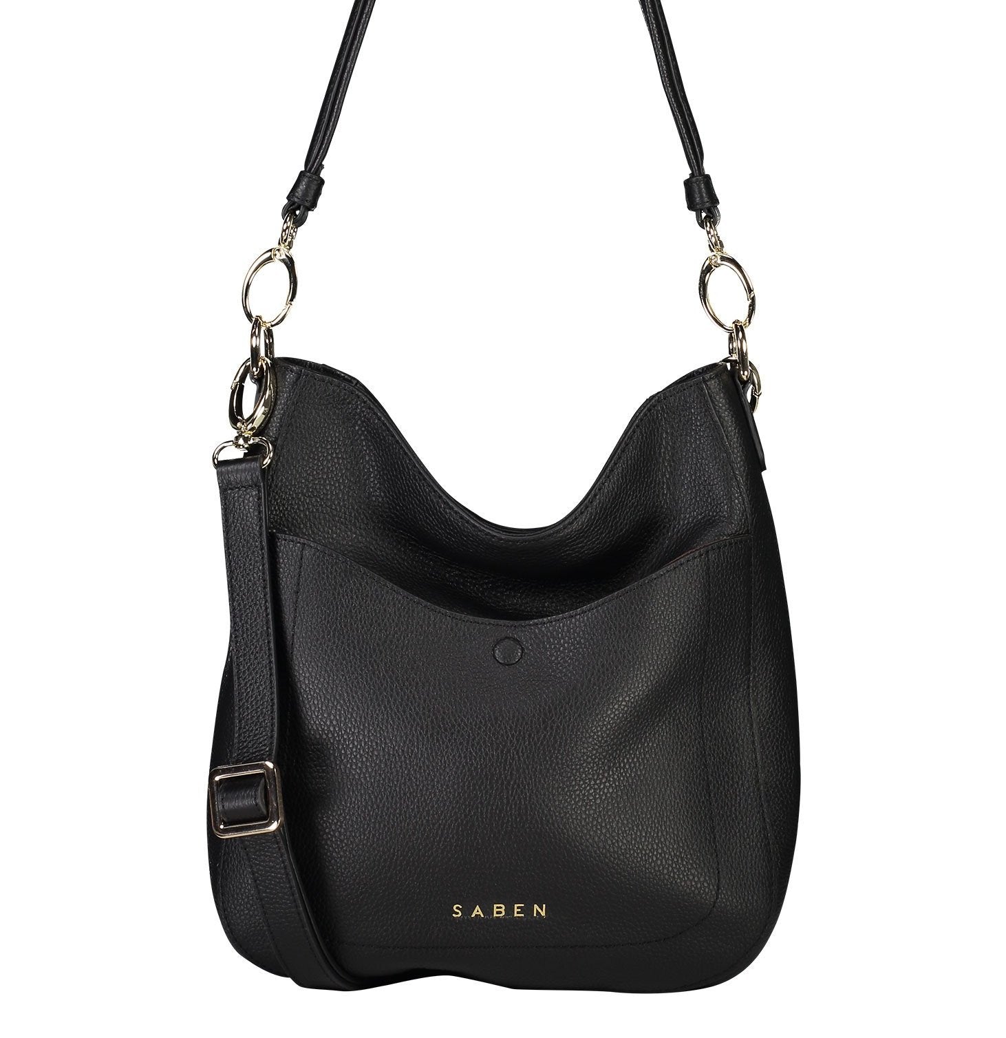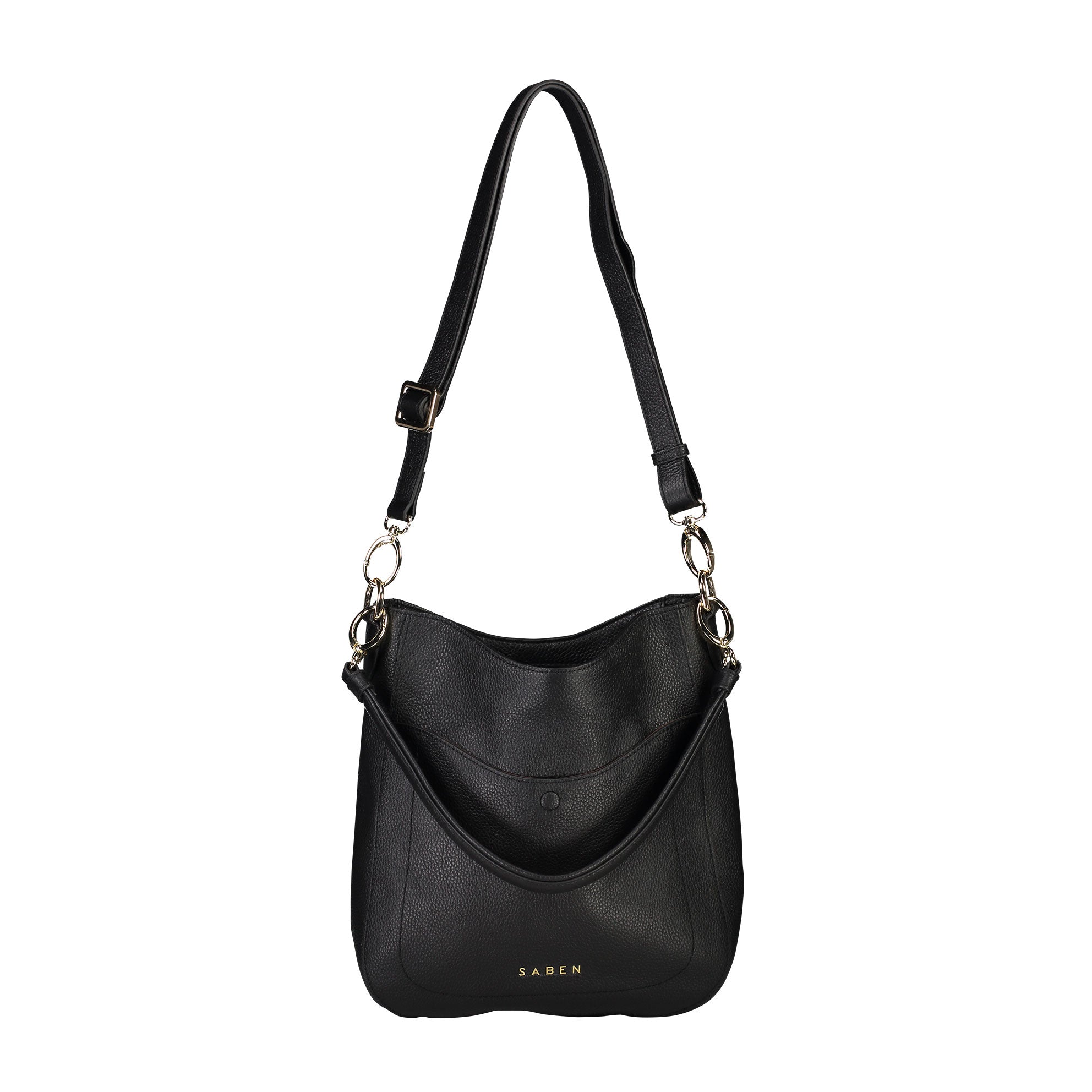 Constructed in buttery soft pebbled leather, shoulder handle and a crossbody strap, external drop pocket, zip top, internal zip and drop pockets, durable poly-nylon lining