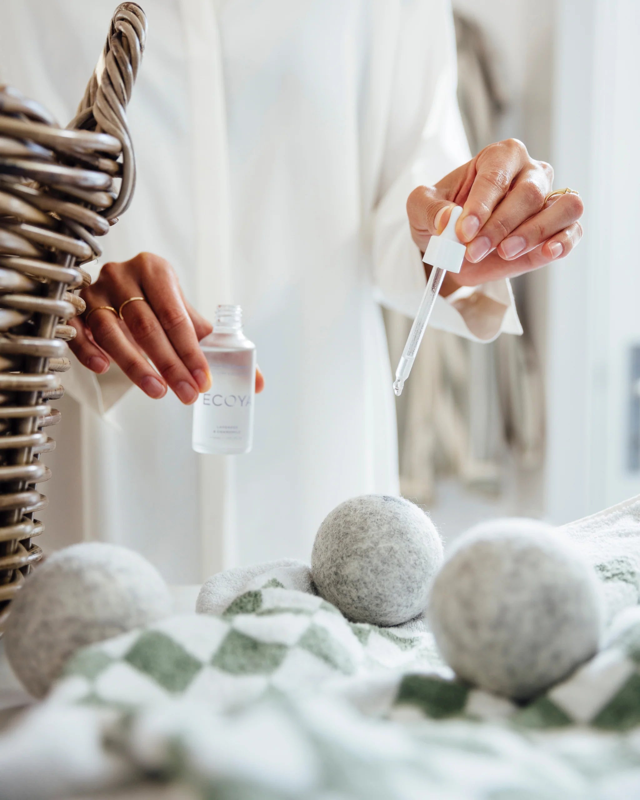 A 50mL individual Dryer Balls Fragrance Dropper to be used on the Dryer Balls, to subtly fragrance your laundry. Sold separately to the dryer ball set.