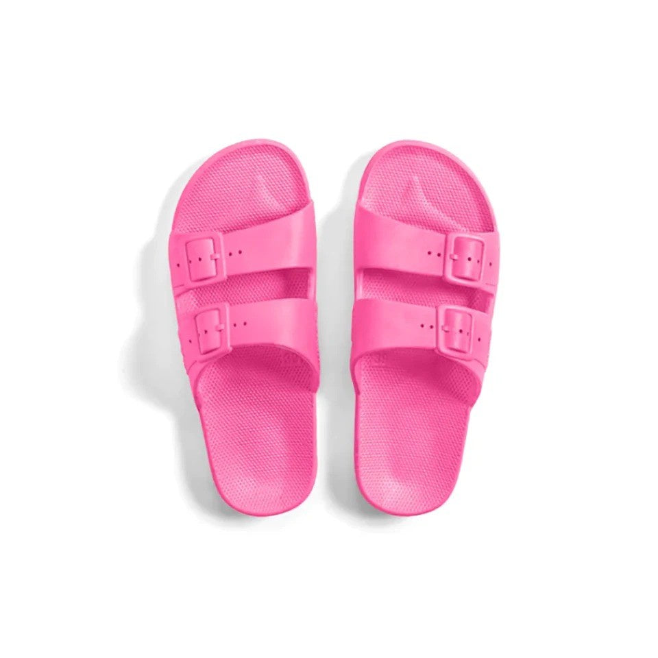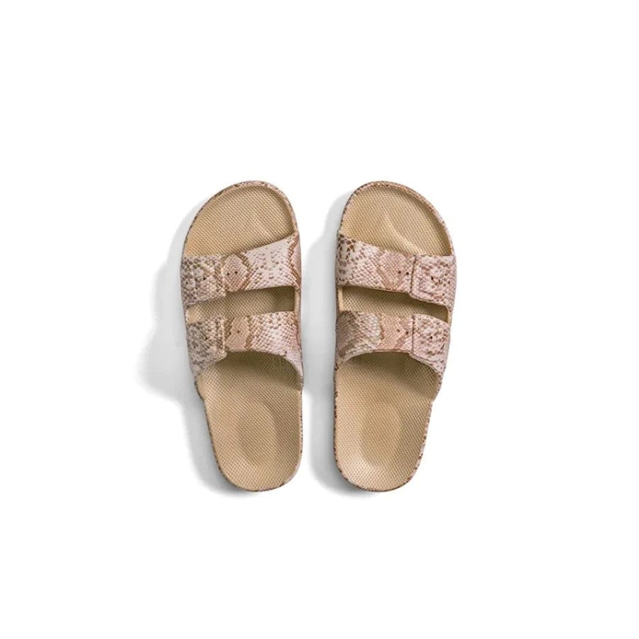 Sleek and stylish the lightweight Freedom Moses slides are the perfect summer accessory. Designed to feel like a hug for your feet, they are comfortable yet supportive. These slides are made from recyclable PCU, are 100% vegan & cruelty free! Freedom Moses shoes are water friendly making them waterproof and perfect for those long days at the beach. Infused with Milk & honey you will love wearing your Freedom Moses slides all day.