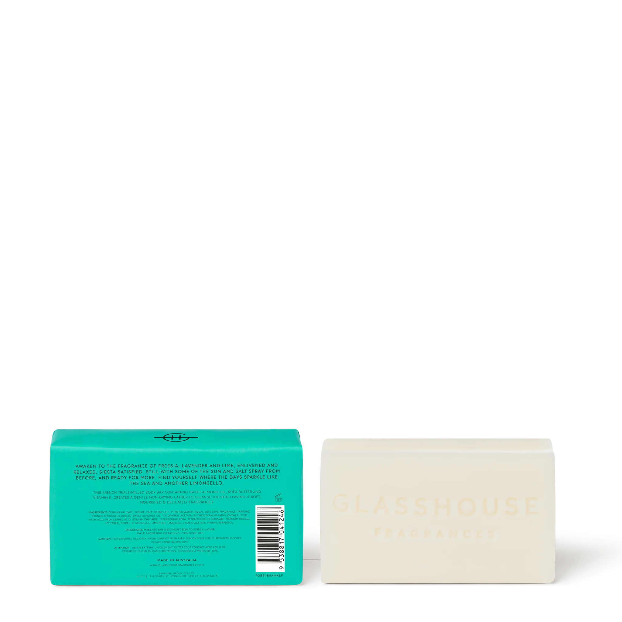 French triple-milled for a luxurious lather, and infused with Almond Oil and Vitamin E. Breezy Freesia, Lavender, Lime and Moss evoke the seaside.