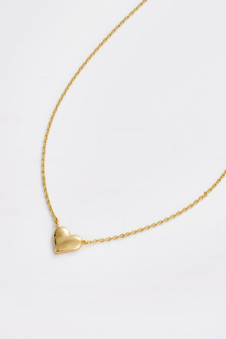 A timeless gold necklace featuring a softly sculpted heart pendant suspended from a fine chain. Simple yet meaningful, it adds a warm, elegant touch to everyday wear or makes a thoughtful gift.