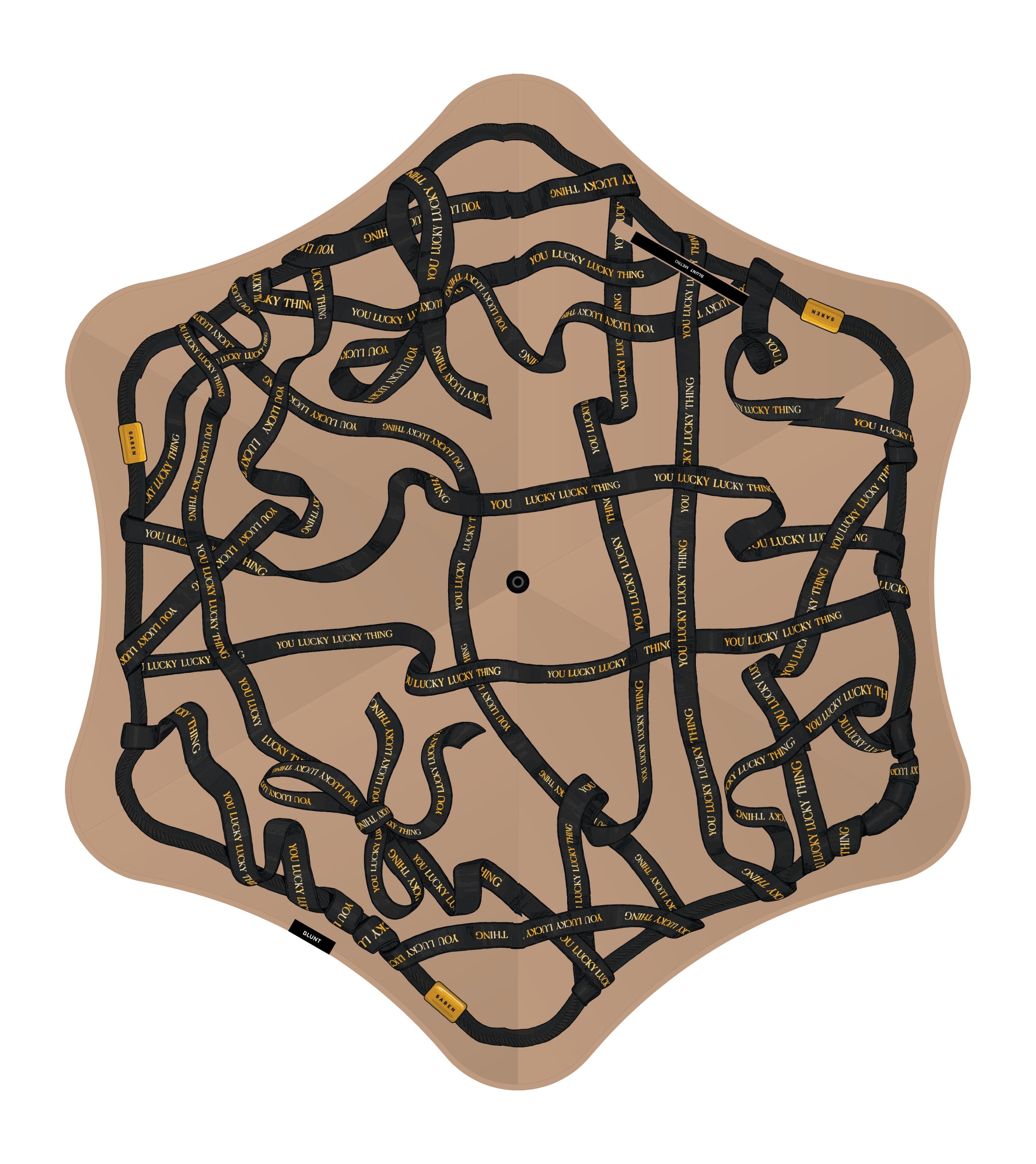 Introducing the latest Saben x Blunt umbrella collaboration. Dressed in Saben's signature "You Lucky Lucky Thing" tagline in a playful ribbon design, you’ll face unpredictable weather with a little more style.