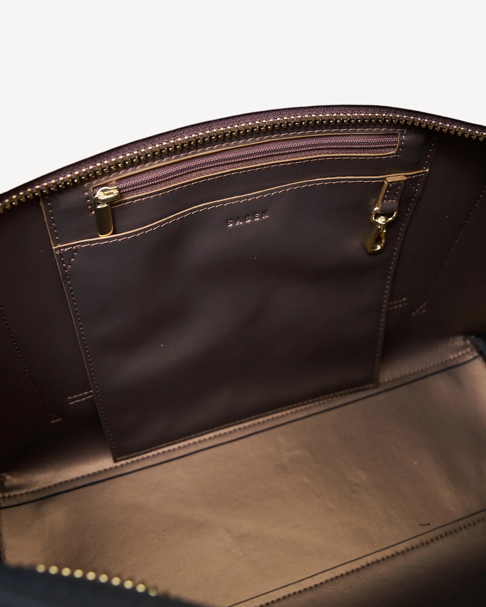 Tabby redefines what it means to be a work tote; Lovingly constructed in premium double-faced leather and finished with a distinctive belt detail that wraps elegantly around the top, she's the perfect blend of structure and style. Boasting a chic, surprise-and-delight interior and clever back pocket that unzips at the bottom to create a trolley sleeve, Tabby is designed for the modern commuter.