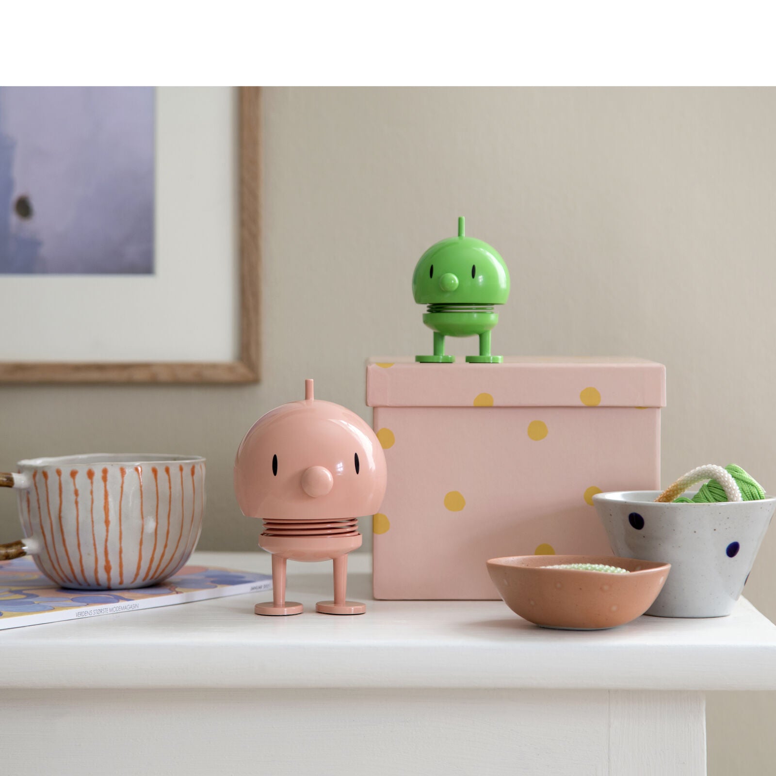 Bimble and Bumble represent the very first Hoptimists designed by Ehrenreich: A girl with smiling eyes wearing a dress and an alert, inquisitive boy with a tuft on his head. Today, the happy Hoptimists are part of Danish design history and they spark joy all over the world. The figurines are available in four different sizes and in a wide range of colours that spread plenty of playfulness, cheer and happiness. There is a Hoptimist for every occasion and every person!