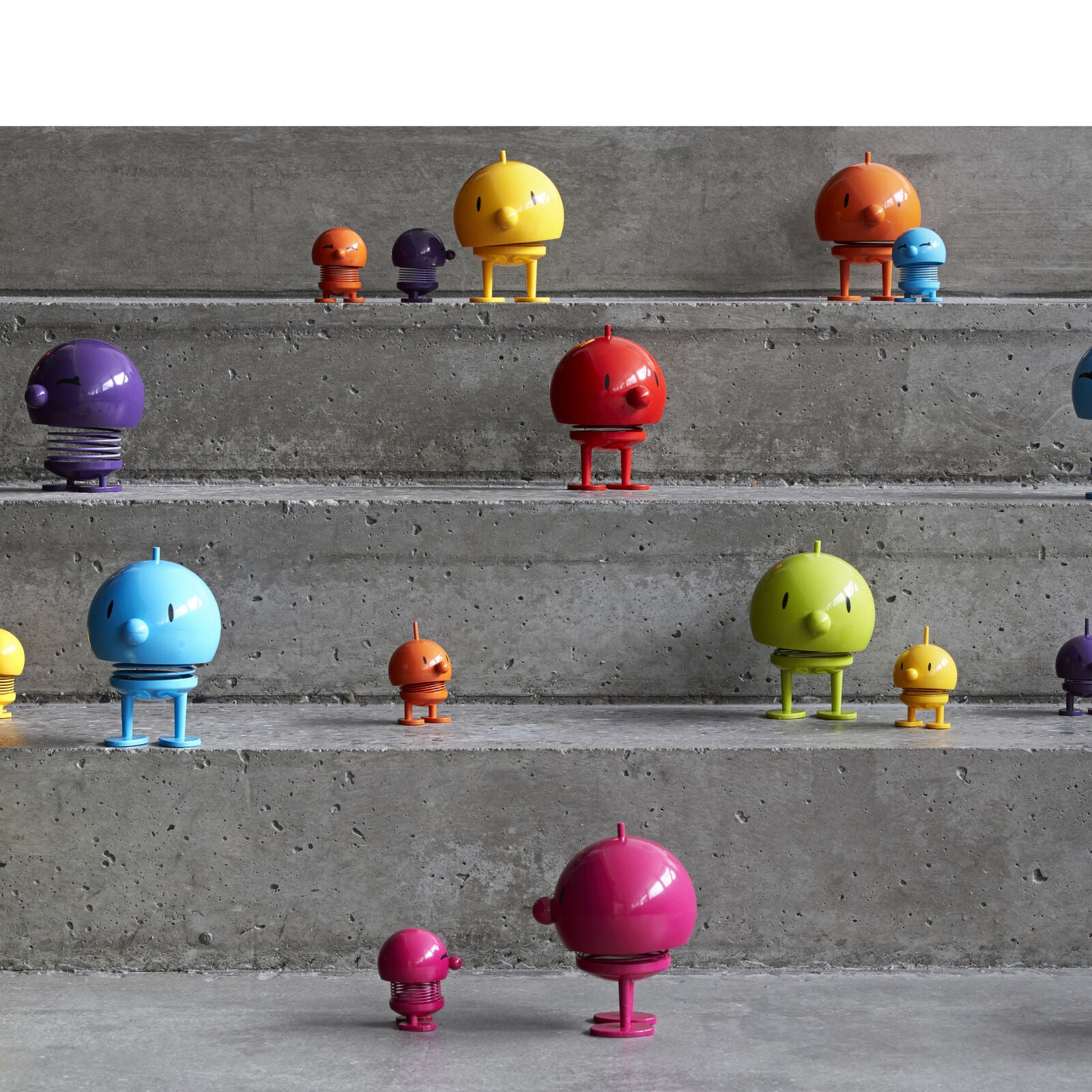 Bimble and Bumble represent the very first Hoptimists designed by Ehrenreich: A girl with smiling eyes wearing a dress and an alert, inquisitive boy with a tuft on his head. Today, the happy Hoptimists are part of Danish design history and they spark joy all over the world. The figurines are available in four different sizes and in a wide range of colours that spread plenty of playfulness, cheer and happiness. There is a Hoptimist for every occasion and every person!