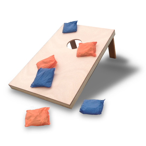 Easy Days One in the Eye (Corn Hole) Game; 2 Boards 60 x 40cm; x8 10cm Square 'Corn Bags' Polyester material, 4 of each colour.