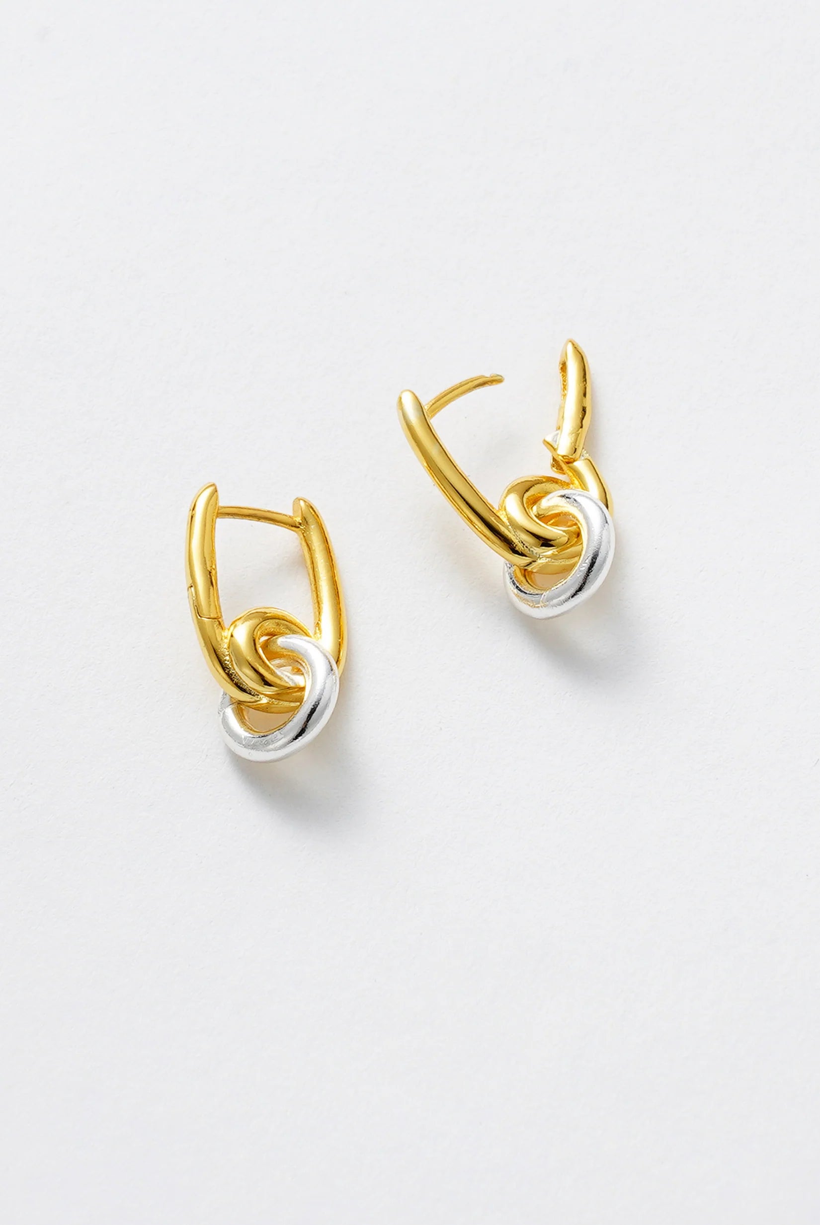The Evie Hoop brings a contemporary edge with its elongated gold silhouette, finished with an interlinked silver ring for a bold mixed-metal look. Lightweight and versatile, this design makes an effortless statement whether worn solo or layered with studs and huggies. Perfect for adding modern shine to your everyday rotation.