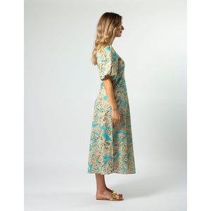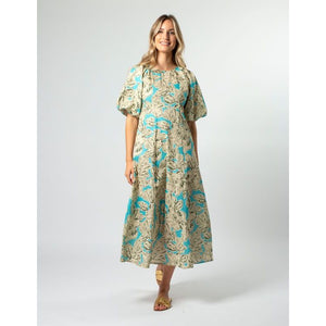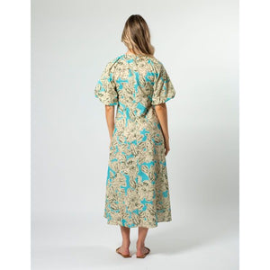 If you're off to the races, a garden party or wedding, this stunning Amalie Dress will be your go to for any event. Her beautiful garden print featuring pops of azure blue and flattering silouette makes it a winning combo!