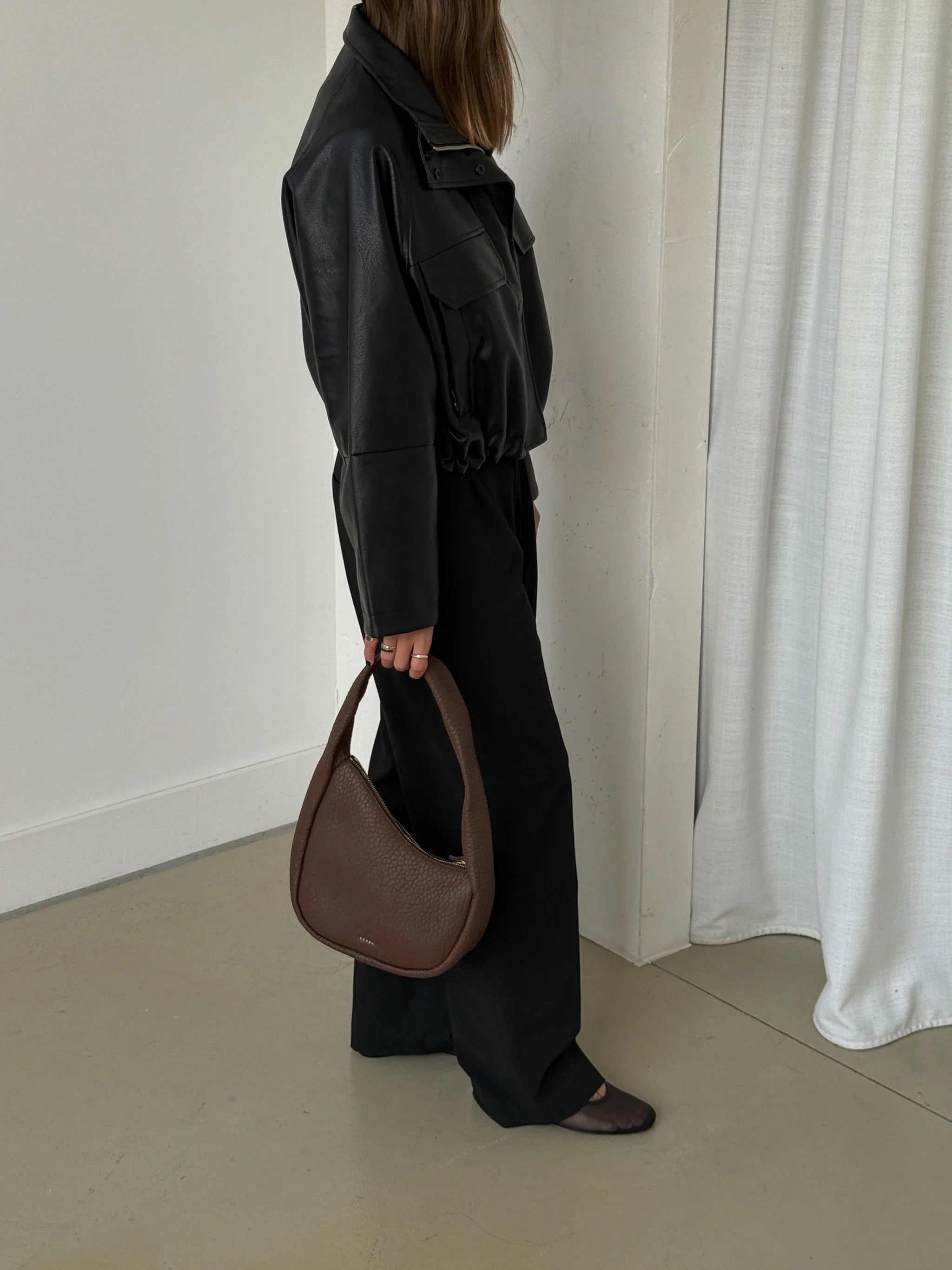 A chic compact companion that redefines everyday elegance with its distinctive curved zipline. This thoughtfully sized piece delivers effortless style and practical functionality in this elegant silhouette. Lovingly crafted in premium pebbled leather, for those who appreciate refined minimalism with a modern twist.