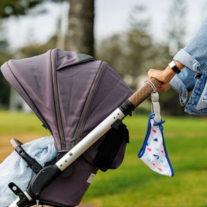 Meet our most flexible clip yet. FLEX comes with a durable elastic cord so you can easily attach and lock it to your bag, luggage, pram and more. Great for carrying baby stuff, sports gear, water bottles, clothes, hats, headphones and anything else that can hang.