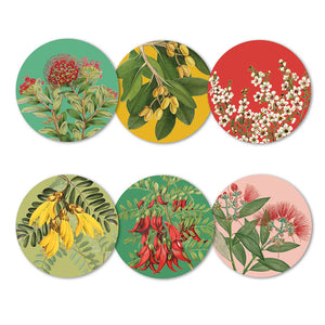 A stunning boxed set of 6 coasters featuring our unique Birds & Botanicals of New Zealand. Each coaster is different. Check out the matching placemats.Cork backed. Size: 100mm diameter. Designed in New Zealand.