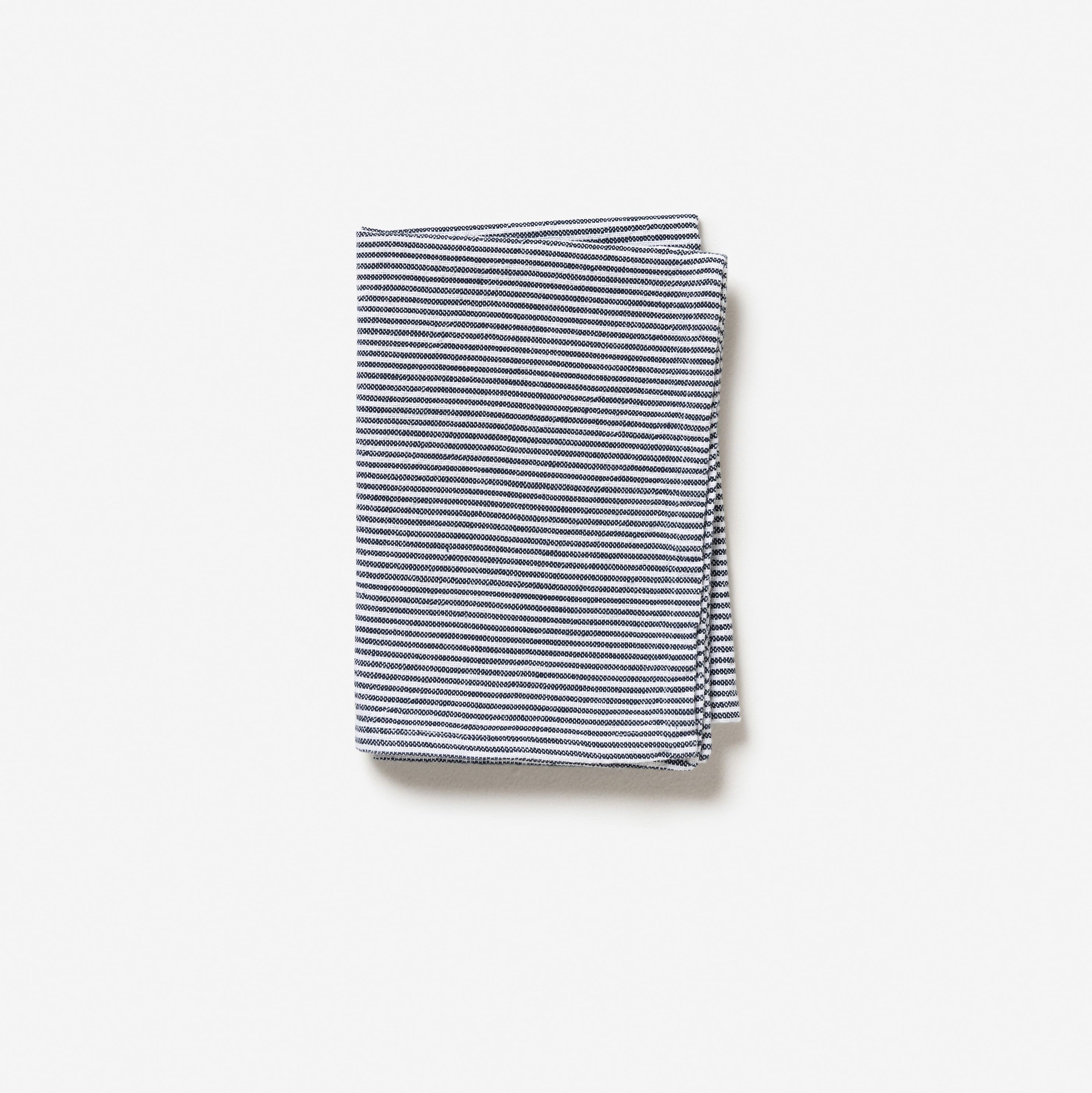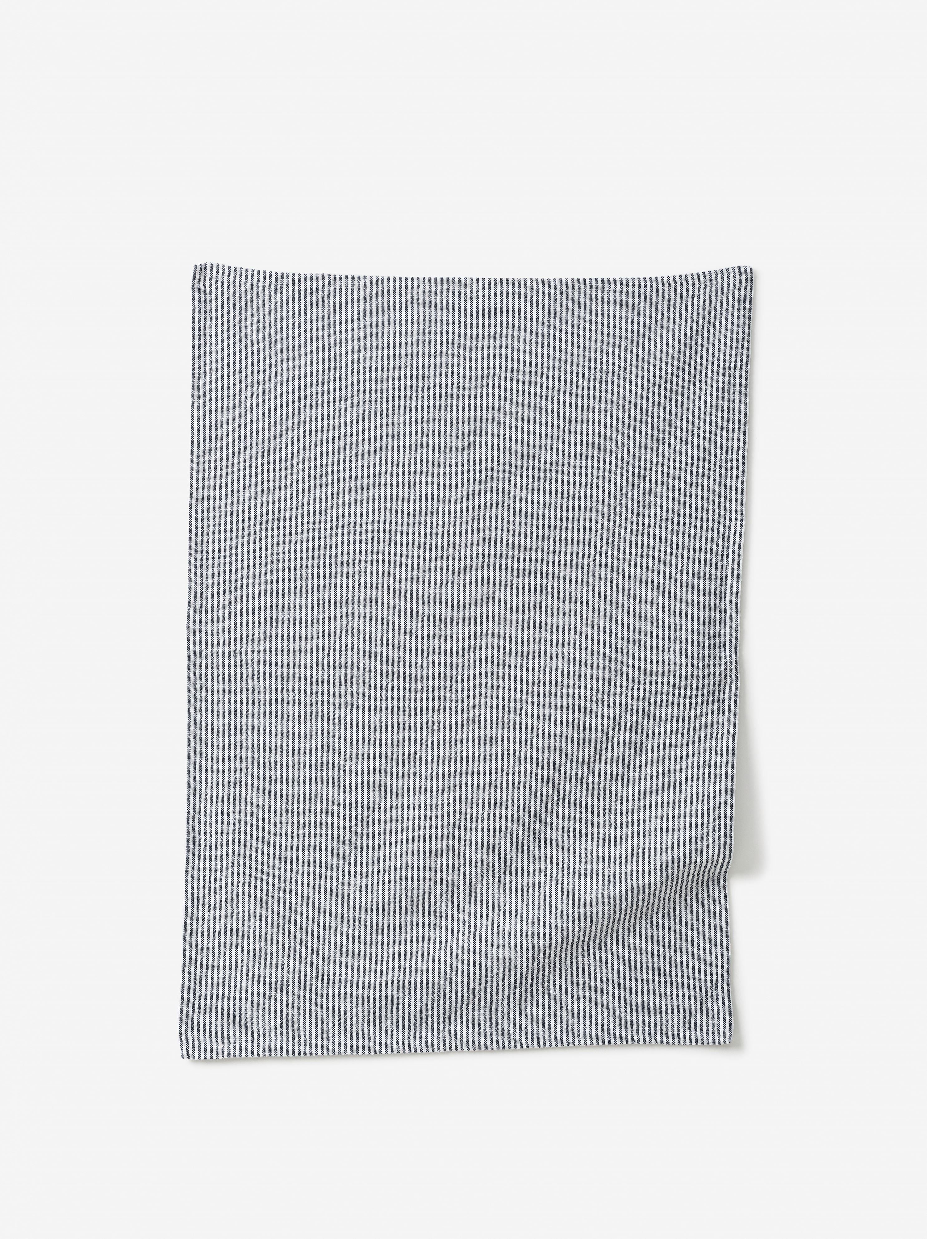 Washed Cotton Tea Towel in Navy Stripe by New Zealand homewares and lifestyle brand, Città Design, welcomes a warm colour palette to an everyday essential.
