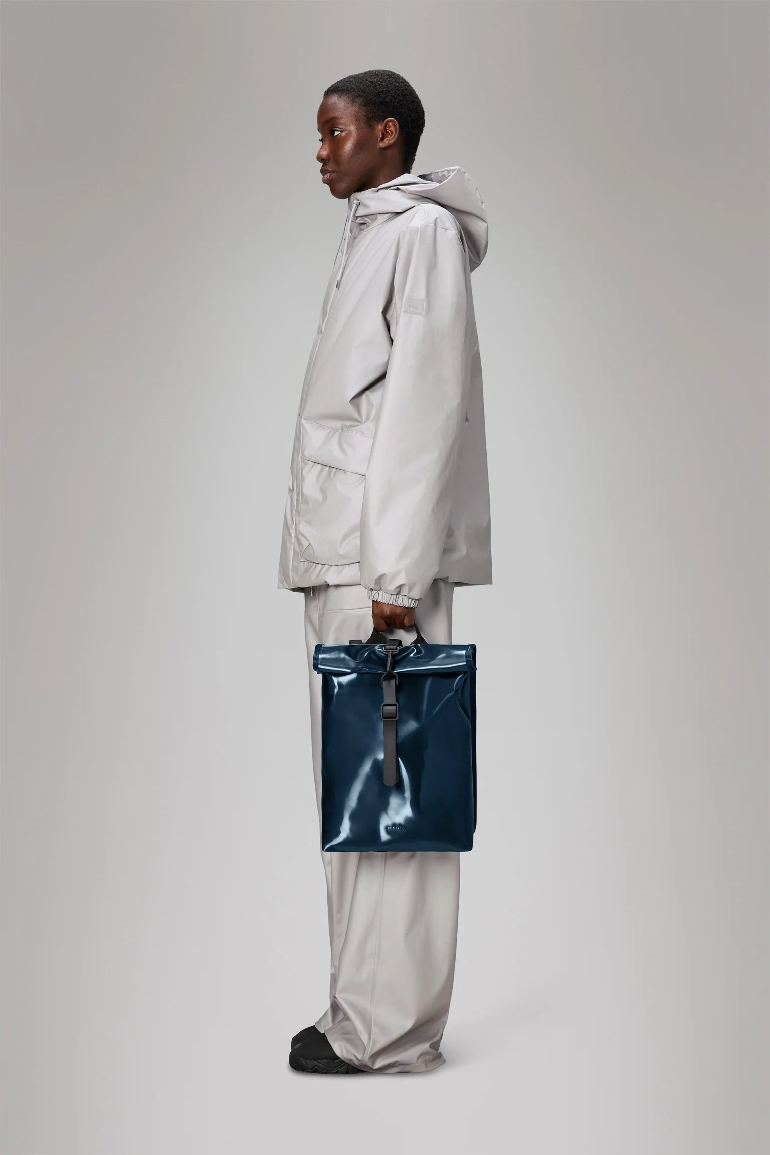 Rolltop Rucksack is cut from Rains' signature PU fabric engineered for carrying strength, durability and a smooth feel.