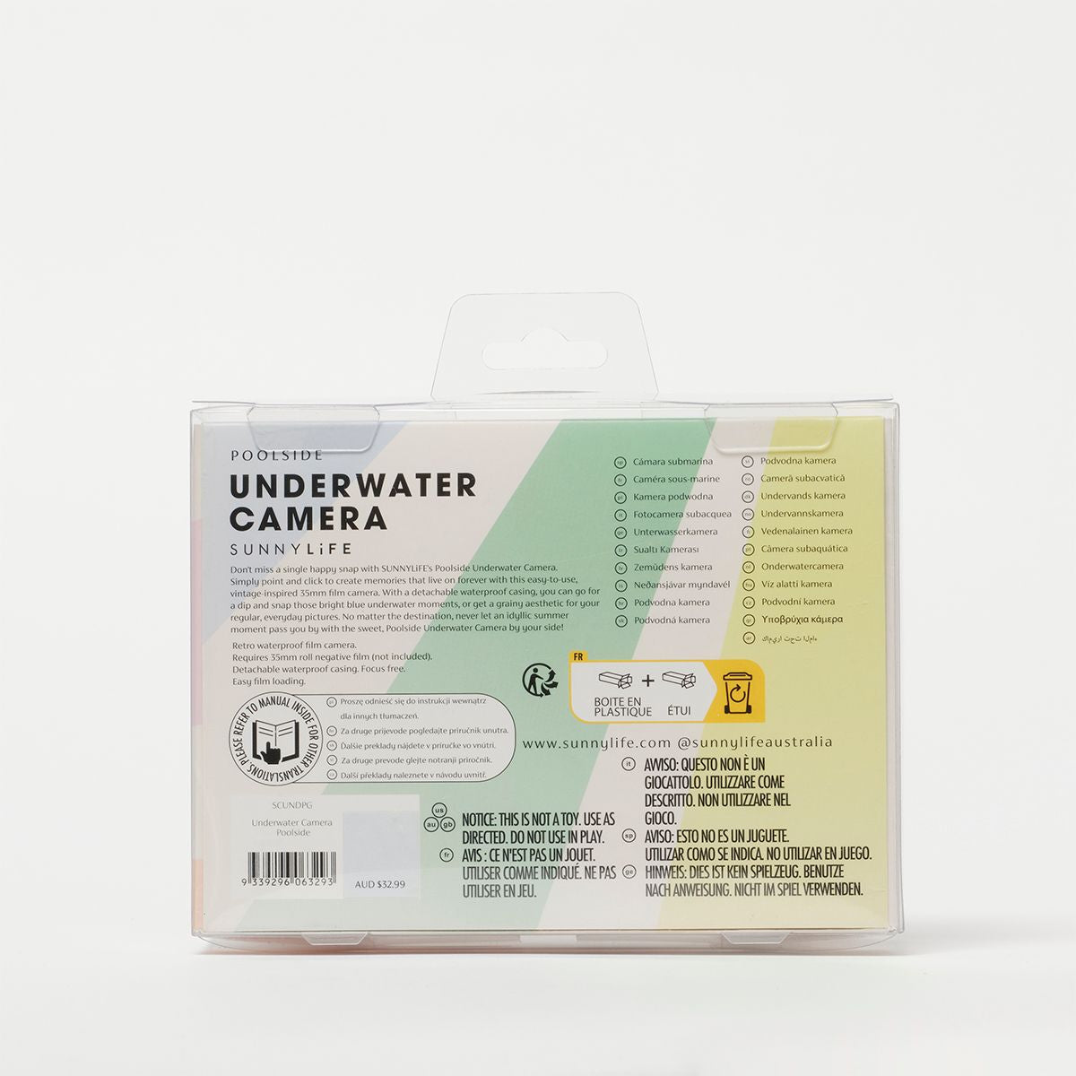 Don't miss a single happy snap with SUNNYLiFE's Pool Side Underwater Camera. Simply point and click to create memories that live on forever with this easy-to-use, vintage-inspired 35mm film camera. With a detachable waterproof casing, you can go for a dip and snap those bright blue underwater moments, or get a grainy aesthetic for your regular, everyday pictures. No matter the destination, never let an idyllic summer moment pass you by with the sweet, Pastel Gelato Underwater Camera by your side!